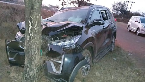 ನಾಯಿ ಅಡ್ಡ ಬಂದ ಹಿನ್ನೆಲೆಯಲ್ಲಿ ಅದನ್ನು ತಪ್ಪಿಸಲು ಹೋಗಿ ಕಾರು ಅಪಘಾತಕ್ಕೀಡಾಗಿದೆ. ನಾಯಿಗೆ ಡಿಕ್ಕಿ ತಪ್ಪಿಸಲು ಹೋಗಿ ನಿಯಂತ್ರಣ ತಪ್ಪಿದ ಕಾರು ಮರಕ್ಕೆ ಡಿಕ್ಕಿ ಹೊಡೆದಿದೆ.ಬೆಳಗ್ಗೆ ಆರು ಘಂಟೆಯ ಸಮಯದಲ್ಲಿ ಕಾರು ಅಪಘಾತವಾಗಿದೆ.