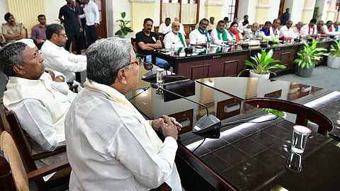 ಬೆಂಗಳೂರು: ದೇವನಹಳ್ಳಿ ಬಳಿಯ ಚನ್ನರಾಯಪಟ್ಟಣ ಹೋಬಳಿಯ ಕೃಷಿ ಭೂಮಿ ಭೂಸ್ವಾಧೀನ ಸಂಬಂಧ ಮುಖ್ಯಮಂತ್ರಿ ಸಿದ್ದರಾಮಯ್ಯ ಇಂದು ವಿಧಾನಸೌಧದ ಸಮ್ಮೇಳನ ಸಭಾಂಗಣದಲ್ಲಿ ರೈತ ಹೋರಾಟಗಾರರು, ಸ್ಥಳೀಯ ಮುಖಂಡರೊಂದಿಗೆ ಸಭೆ ನಡೆಸಿದರು.