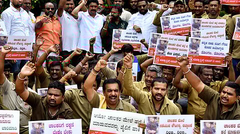 ಸಿಐಟಿಯು ನೇತೃತ್ವದಲ್ಲಿ ಆಟೋ ರಿಕ್ಷಾ ಡ್ರೈವರ್ಸ್ ಯುನಿಯನ್ ಆಯೋಜಿಸಿದ್ದ ಪ್ರತಿಭಟನೆಯಲ್ಲಿ ನೂರಾರು ಚಾಲಕರು ಭಾಗವಹಿಸಿದ್ದರು.