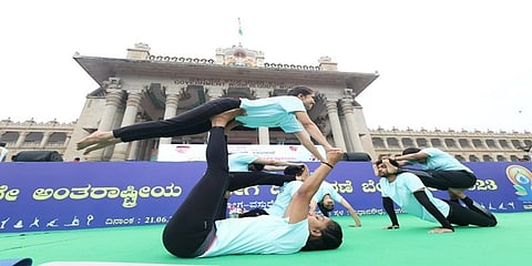 ಬೆಂಗಳೂರು: ರಾಜ್ಯ ಸರ್ಕಾರ “ಒಂದು ಭೂಮಿ ಒಂದು ಆರೋಗ್ಯಕ್ಕಾಗಿ ಯೋಗ” ಎಂಬ ಘೋಷ ವಾಕ್ಯದೊಂದಿಗೆ ಜೂನ್ 21 ಅಂತರಾಷ್ಟ್ರೀಯ ಯೋಗ ದಿನಾಚರಣೆಯನ್ನು ವಿಧಾನಸೌಧದ ಭವ್ಯ ಮೆಟ್ಟಿಲುಗಳ ಮೇಲೆ ಆಚರಿಸಲು ನಿರ್ಧರಿಸಿದೆ.
