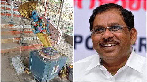 ಕುಣಿಗಲ್: ಗೃಹ ಸಚಿವ ಡಾ.ಜಿ ಪರಮೇಶ್ವರ್ ಅವರ ಸ್ವಕ್ಷೇತ್ರ ತುಮಕೂರಿನ ಕುಣಿಗಲ್ ನ ರಂಗಸ್ವಾಮಿ ಬೆಟ್ಟದ ಪ್ರವೇಶ ದ್ವಾರದಲ್ಲಿದ್ದ ವಿಷ್ಣು ದೇವರ ವಿಗ್ರಹ ಭಗ್ನ ಮಾಡಲಾಗಿದೆ. ಕಿಡಿಗೇಡಿಯೊಬ್ಬ ತಂತಿ ಬೇಲಿ ಹಾಕಿದ್ದರೂ ವಿಷ್ಣುವಿಗ್ರಹವನ್ನು ಧ್ವಂಸ ಮಾಡಿದ್ದಾನೆ. ಈ ಘಟನೆಯ ಸಿಸಿಟಿವಿ ವಿಡಿಯೋ ಇದೀಗ ಸಾಮಾಜಿಕ ಜಾಲತಾಣದಲ್ಲಿ ವೈರಲ್ ಆಗಿದ್ದು ಹಿಂದೂಗಳ ಆಕ್ರೋಶಕ್ಕೆ ಕಾರಣವಾಗಿದೆ. ಕಾಂಗ್ರೆಸ್ ನೇತೃತ್ವದ ಸರ್ಕಾರದಲ್ಲಿ ಹಿಂದೂ ದೇವತೆಗಳು ಎಷ್ಟು ಸೇಫ್ ಎಂಬ ಪ್ರಶ್ನೆಯೂ ಮೂಡಿದೆ. ದೇವಾಲಯದ ಸಿಬ್ಬಂದಿ ಚಂದ್ರಶೇಖರ್ ನೀಡಿದ ದೂರಿನ ಮೇರೆಗೆ ಕುಣಿಗಲ್ ಪೊಲೀಸರು ಪ್ರಕರಣ ದಾಖಲಿದ್ದಾರೆ. ಸಿಸಿಟಿವಿ ಕ್ಯಾಮೆರ ದೃಶ್ಯಗಳ ಆಧಾರಿಸಿ ನೀಡಿದ ದೂರಿನ ಮೇರೆಗೆ ಅಡೋನಹಳ್ಳಿ ಗ್ರಾಮದ ಶಂಕಿತ ವ್ಯಕ್ತಿ ವಿರುದ್ಧ ದೂರು ನೀಡಲಾಗಿದೆ.