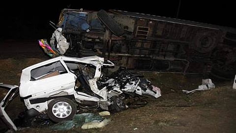 ಮುದಿಗುಪ್ಪ(ಅನಂತಪುರ): ತಿರುಪತಿಯ ವೆಂಕಟೇಶ್ವರ ಸ್ವಾಮಿ ದರ್ಶನ ಪಡೆದು ವಾಪಸ್ಸಾಗುತ್ತಿದ್ದ ವೇಳೆ ಓಮ್ನಿ ಕಾರಿಗೆ ಲಾರಿ ಡಿಕ್ಕಿ ಹೊಡೆದ ಪರಿಣಾಮ ನಾಲ್ವರು ಮೃತಪಟ್ಟಿದ್ದಾರೆ.