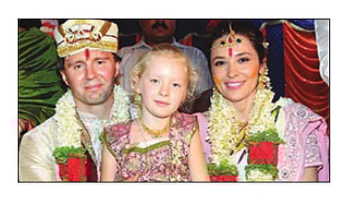 ನೀಲಾವರ (ಉಡುಪಿ): ಉಕ್ರೇನ್ ದೇಶದ ಫುಟ್ಬಾಲ್ ಆಟಗಾರ ವಿಟಾಲಿ ರೇವ ಮತ್ತು ಎಲೆನಾ ಅವರ ಮದುವೆ ನೀಲಾವರ ಗೋಶಾಲೆಯಲ್ಲಿ ಗುರುವಾರ ನಡೆಯಿತು. ಅವರು ಈಗಾಗಲೇ ತಮ್ಮ ದೇಶದ ಪದ್ಧತಿಯಂತೆ ಮದುವೆಯಾಗಿದ್ದು, ಅವರಿಗೆ ವೆಸಿಲಿಸಾ ಎನ್ನುವ ಮುದ್ದಾದ ಮಗಳೂ ಇದ್ದಾಳೆ.