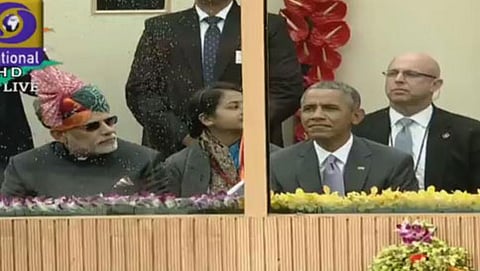 ಇಡೀ ವಿಶ್ವವೇ ಗಮನಿಸುತ್ತಿರುವ ಈ ಐತಿಹಾಸಿಕ ಕಾರ್ಯಕ್ರಮಕ್ಕೆ ಮುಖ್ಯ ಅತಿಥಿಯಾಗಿ ಆಗಮಿಸಿದ್ದ ಅಮೆರಿಕ ಅಧ್ಯಕ್ಷ ಬರಾಕ್ ಒಬಾಮ ಮತ್ತು ಅವರ ಪತ್ನಿ ಮಿಶೆಲ್ ಒಬಾಮಾ ಅವರು ಸಾಕ್ಷಿಯಾಗಿದ್ದರು. ಭಾರತೀಯ ಸೇನೆಯ ವಿವಿಧ ದಳಗಳಿಂದ ರಾಷ್ಟ್ರಪತಿ ಪ್ರಣಬ್ ಮುಖರ್ಜಿ ಅವರು ಗೌರವ ವಂದನೆ ಸ್ವೀಕರಿಸಿದರು. ಬಳಿಕ ಭಾರತೀಯ ಸೇನೆಯ ವಿವಿಧ ದಳಗಳು ತಮ್ಮ ಶಕ್ತಿ ಪ್ರದರ್ಶನ ತೋರಿದವು.