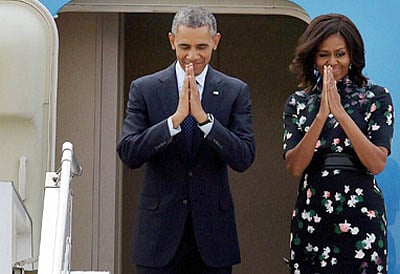 ಇಂದು ಮಧ್ಯಾಹ್ನ ಪಾಲಂ ವಿಮಾನ ನಿಲ್ದಾಣದಲ್ಲಿ ಒಬಾಮ ದಂಪತಿ ಭಾರತೀಯರಿಗೆ ಮತ್ತೊಂದು ನಮಸ್ತೆ ಹೇಳುವ ಮೂಲಕ ಮಹತ್ವಪೂರ್ಣ ಮೂರು ದಿನಗಳ ಭಾರತ ಪ್ರವಾಸವನ್ನು ಮುಕ್ತಾಯಗೊಳಿಸಿದ್ದಾರೆ.
