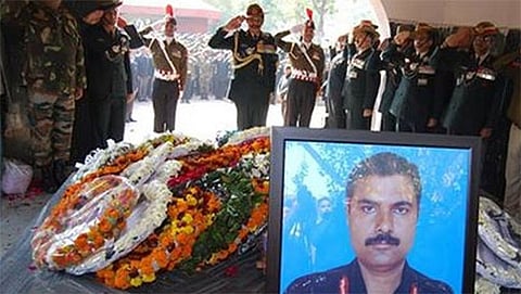 ನವದೆಹಲಿ: ಗಣರಾಜ್ಯೋತ್ಸವ ದಿನದಂದು ಯುದ್ಧ ಸೇನಾ ಪದಕದ ಗೌರವ ಪಡೆದಿದ್ದ ಕರ್ನಲ್ ಮುನೀಂದ್ರ ನಾಥ್ ರಾಯ್ ಮತ್ತು ಸಂಜೀವ್ ಸಿಂಗ್ ಜಮ್ಮು-ಕಾಶ್ಮೀರ ಗಡಿಯಲ್ಲಿ ಉಗ್ರರ ಗುಂಡಿಗೆ ಬಲಿಯಾಗಿದ್ದ ಹುತಾತ್ಮ ಯೋಧರಿಗೆ ದೆಹಲಿಯಲ್ಲಿ ಭಾವಪೂರ್ಣ ವಿದಾಯ ಹೇಳಲಾಯಿತು.
