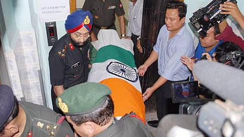 ಗುವಾಹಟಿ(ಅಸ್ಸಾಂ): ನಿನ್ನೆ ಮೇಘಾಲಯದ ಶಿಲ್ಲಾಂಗ್ ನಲ್ಲಿ ವಿಧಿವಶರಾದ ಡಾ. ಎಪಿಜೆ ಅಬ್ದುಲ್ ಕಲಾಂರ ಪಾರ್ಥಿವ ಶರೀರವನ್ನು ದೆಹಲಿಗೆ ತರಲಾಗುತ್ತಿದೆ.