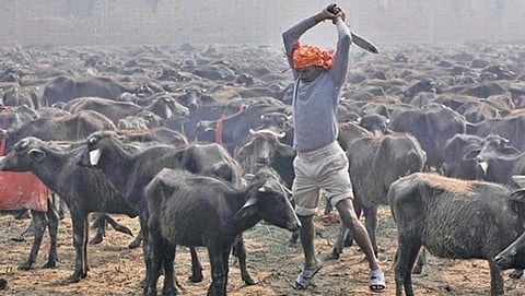 ನವದೆಹಲಿ: ಲಕ್ಷಾಂತರ ಪ್ರಾಣಿಗಳ ಮಾರಣಹೋಮಕ್ಕೆ ಸಾಕ್ಷಿಯಾಗುತ್ತಿದ್ದ ನೇಪಾಳದ ಗಧಿಮಾಯಿ ಉತ್ಸವದಲ್ಲಿ ಇನ್ನು ರಕ್ತದೋಕುಳಿ ಹರಿಯಲ್ಲ. ಹೌದು. ಗಧಿಮಾಯಿ ಉತ್ಸವದಲ್ಲಿ ಪ್ರಾಣಿ ವಧೆಗೆ ನಿಷೇಧ ಹೇರಿ ಮಂಗಳವಾರ ನೇಪಾಳದ ದೇವಾಲಯ ಮಂಡಳಿ ಐತಿಹಾಸಿಕ ಘೋಷಣೆ ಮಾಡಿದೆ. ಇದನ್ನು ಜಾಗತಿಕ ಪ್ರಾಣಿ ದಯಾ ಹೋರಾಟಗಾರರಿಗೆ ಸಿಕ್ಕ ಅತಿದೊಡ್ಡ ಗೆಲವು ಎಂದೇ ಬಣ್ಣಿಸಲಾಗಿದೆ.