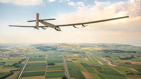ಅಬುದಾಬಿ: ಒಂದೇ ಒಂದು ಹನಿ ಇಂಧನ ಇಲ್ಲದೇ ಹಾರಾಡುವ ಪರಿಸರ ಸ್ನೇಹಿ ಸೋಲಾರ್ ವಿಮಾನ ಇಂಪಲ್ಸ್-2 ಸೋಮವಾರ ಅಬುದಾಬಿಯಿಂದ ಪ್ರಯೋಗಾರ್ಥ ಹಾರಾಟ ನಡಸಿದೆ.ಅಬುದಾಬಿಯಲ್ಲಿ 10 ಗಂಟೆ ಹಾರಾಟ ನಡೆಸಿ ನಂತರ ಮಸ್ಕತ್ಗೆ ತೆರಳಲಿದೆ. ಅಲ್ಲಿಂದ ಮಂಗಳವಾರ ಭಾರತದಲ್ಲಿ ಬಂದಿಳಿಯಲಿದೆ.