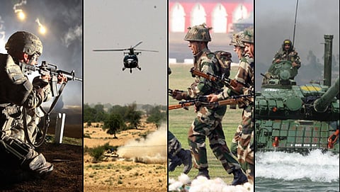 ನವದೆಹಲಿ: ತನ್ನ ಯುದ್ಧ ತಂತ್ರಗಳನ್ನು ಬಲಪಡಿಸುವ ನಿಟ್ಟಿನಲ್ಲಿ ಮತ್ತು ಎದುರಾಳಿ ರಾಷ್ಟ್ರಗಳಿಗೆ ಬಲವಾದ ಸಂದೇಶ ರವಾನಿಸುವ ನಿಟ್ಟಿನಲ್ಲಿ ಭಾರತೀಯ ಸೇನೆ ಬೃಹತ್ ಯುದ್ಧ ತರಬೇತಿಯನ್ನು ಹಮ್ಮಿಕೊಂಡಿದೆ ಎಂದು ತಿಳಿದುಬಂದಿದೆ.