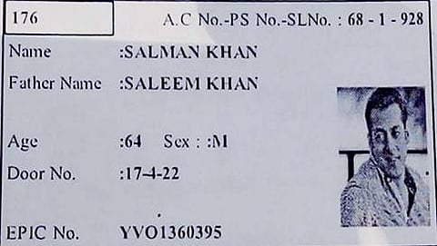 ವ್ಯಕ್ತಿಗೆ ನೀಡಲಾಗಿರುವ ವೋಟರ್ ಐಡಿಯಲ್ಲಿ ಸಲ್ಮಾನ್ ಖಾನ್ ಅವರ ಹೆಸರಲ್ಲದೆ, ಅವರ ತಂದೆಯ ಹೆಸರು ಸಲೀಂ ಖಾನ್ ಎಂದು ನೀಡಲಾಗಿದೆ. ಆದರೆ, ವಯಸ್ಸು ಮಾತ್ರ 64 ಎಂದು ನಮೂದಿಸಲಾಗಿದೆ.