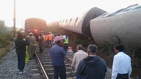 ರೈಲು ಹಳಿತಪ್ಪಿರುವುದರಿಂದ ಚೆನ್ನೈ ಮಾರ್ಗದ 2 ರೈಲು ಸಂಚಾರ ರದ್ದು ಮಾಡಲಾಗಿದೆ.