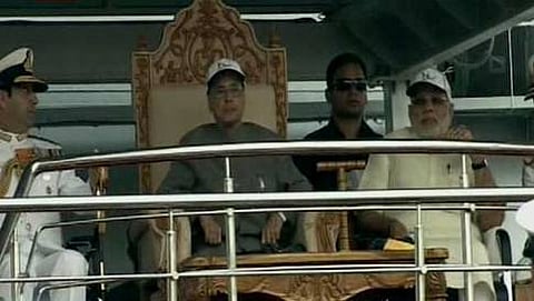 ವಿಶಾಖಪಟ್ನಂ: ಇಲ್ಲಿ ಆರಂಭಗೊಂಡಿರುವ ಐದು ದಿನಗಳ ನೌಕೆ ಪ್ರದರ್ಶನ ಮತ್ತು ಐಎಫ್ ಆರ್ ಉತ್ಸವದ ಮೂರನೇ ದಿನವಾದ ಶನಿವಾರ ನಮ್ಮ ದೇಶದ ಮೂರೂ ರಕ್ಷಣಾ ಪಡೆಗಳ ಮುಖ್ಯ ಕಮಾಂಡರ್ ರಾಷ್ಟ್ರಪತಿ ಪ್ರಣಬ್ ಮುಖರ್ಜಿ ಇಂಟರ್ ನ್ಯಾಷನಲ್ ಫ್ಲೀಟ್ ರಿವ್ಯೂ (ಐಎಫ್ ಆರ್ ) ನ್ನು ಪರೀಕ್ಷಿಸಿದರು. ಅವರ ಜೊತೆ ಪ್ರಧಾನ ಮಂತ್ರಿ ನರೇಂದ್ರ ಮೋದಿ ಮತ್ತು ರಕ್ಷಣಾ ಸಚಿವ ಮನೋಹರ್ ಪರ್ರಿಕರ್ ಸಹ ಇದ್ದಾರೆ.