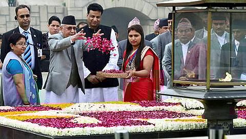 ನವದೆಹಲಿ: ಆರು ದಿನಗಳ ಭಾರತ ಕೈಗೊಂಡಿರುವ ನೇಪಾಳ ಪ್ರಧಾನಿ ಕೆ.ಪಿ ಶರ್ಮಾ ಒಲಿ ಅವರು ರಾಜ್ ಘಾಟ್ ನಲ್ಲಿರುವ ರಾಷ್ಟ್ರಪಿತ ಮಹಾತ್ಮ ಗಾಂಧೀಜಿ ಅವರ ಸಮಾಧಿಗೆ ಪುಷ್ಪನಮನ ಸಲ್ಲಿಸಿದರು.