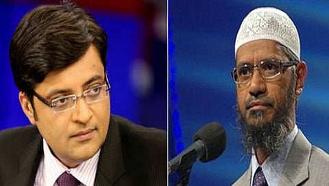ಮುಂಬೈ: ನನ್ನ ವಿರುದ್ಧ ಮಾಧ್ಯಮದಲ್ಲಿ ಅಪಪ್ರಚಾರ ಮಾಡಿದ್ದಾರೆ ಎಂದು ಆರೋಪಿಸಿ ವಿವಾದಾತ್ಮಕ ಇಸ್ಲಾಂ ಧರ್ಮ ಪ್ರಚಾರಕ ಜಾಕೀರ್ ನಾಯ್ಕ್ ಟೈಮ್ಸ್ ನೌ ಸುದ್ದಿ ವಾಹಿನಿ ಎಡಿಟರ್ ಅರ್ನಬ್ ಗೋಸ್ವಾಮಿ ವಿರುದ್ಧ 500 ಕೋಟಿ ರುಪಾಯಿ ಮೌಲ್ಯದ ಮಾನನಷ್ಟ ಮೊಕದ್ದಮೆ ದಾಖಲಿಸಿದ್ದಾನೆ.