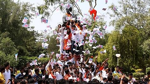ನವದೆಹಲಿ: ದೆಹಲಿ ವಿಶ್ವವಿದ್ಯಾನಿಲಯದ ವಿದ್ಯಾರ್ಥಿ ಸಂಘಟನೆ ಚುನಾವಣೆಯಲ್ಲಿ ಅಖಿಲ ಭಾರತ ವಿದ್ಯಾರ್ಥಿ ಪರಿಷತ್(ಎಬಿವಿಪಿ) ಸಂಘಟನೆ ತನ್ನ ಪ್ರಾಬಲ್ಯವನ್ನು ಉಳಿಸಿಕೊಂಡಿದ್ದು, ನಾಲ್ಕು ಸ್ಥಾನಗಳ ಪೈಕಿ ಮೂರೂ ಸ್ಥಾನಗಳಲ್ಲಿ ಗೆಲುವು ಸಾಧಿಸಿದೆ. ಕಾಂಗ್ರೆಸ್ ನ ಎನ್ಎಸ್ ಯುಐ ವಿದ್ಯಾರ್ಥಿ ಸಂಘಟನೆ ಒಂದು ಸ್ಥಾನದಲ್ಲಿ ಗೆಲ್ಲುವ ಮೂಲಕ ಜಂಟಿ ಕಾರ್ಯದರ್ಶಿ ಸ್ಥಾನವನ್ನು ಪಡೆದಿದೆ.