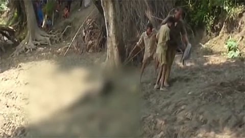 ಬಳಿಕ ಸುಮಾರು ದೂರಗಳವರೆಗೂ ಹೆಣವನ್ನು ಎಳೆದುಕೊಂಡು ಹೋಗಿದ್ದು, ಪೊಲೀಸರ ಕ್ರಮವನ್ನು ಗ್ರಾಮಸ್ಥರು ಪ್ರಶ್ನಿಸಿದರಾದರೂ ಪೊಲೀಸರು ಎಂಬ ಭಯಕ್ಕೆ ಯಾರೂ ಇದನ್ನು ಗಟ್ಟಿಯಾಗಿ ಪ್ರಶ್ನಿಸಿಲ್ಲ. ನದಿ ದಡದಿಂದ ಹಿಡಿದು ಪೊಲೀಸರ ಕಾರು ನಿಂತಿದ್ದ ಪ್ರದೇಶದ ವರೆಗೂ ಹೆಣದ ಕುತ್ತಿಗೆ ಹಗ್ಗ ಕಟ್ಟಿ ಪೊಲೀಸರು ಎಳೆದೊಯ್ದಿದ್ದಾರೆ.