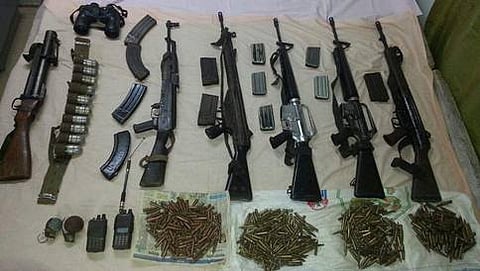 ಎಸ್ಎಲ್ಆರ್, ಅಮೆರಿಕ ಮೂಲಕ ಸೆಮಿ-ಆಟೋಮೆಟಿಕ್ ರೈಫಲ್, 2 ದೇಸೀ ನಿರ್ಮಿಕ ರೈಫಲ್ ಗಳು, 81 ಸಜೀವ ಕಾರ್ಟ್ರಿಜ್ಗಳು, ಶಸ್ತ್ರಾಸ್ತ್ರಗಳು ಹಾಗೂ ಸ್ಫೋಟಕ ವಸ್ತುಗಳನ್ನು ಪೊಲೀಸರು ವಶಕ್ಕೆ ಪಡೆದುಕೊಂಡಿದ್ದಾರೆ.