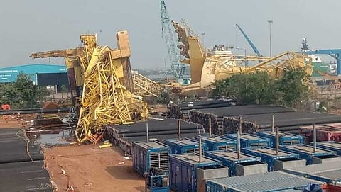 ಕಾಕಿನಾಡ: ನೆರೆಯ ಆಂಧ್ರಪ್ರದೇಶದ ಕಾಕಿನಾಡ ಬಂದರಿನಲ್ಲಿ ದುರಸ್ಥಿ ಮಾಡಲಾಗುತ್ತಿದ್ದ ಎರಡು ಬೃಹತ್ ಗಾತ್ರದ ಕ್ರೇನ್ ಗಳು ಕುಸಿದ ಪರಿಣಾಮ ಓರ್ವ ಮೃತಪಟ್ಟಿದ್ದು, ಮತ್ತಿಬ್ಬರು ಗಾಯಗೊಂಡಿದ್ದಾರೆ. ಇನ್ನೂ ಹಲವು ಮಂದಿ ಅವಶೇಷಗಳಡಿಯಲ್ಲಿ ಸಿಲುಕಿರುವ ಸಾಧ್ಯತೆ ಇದೆ.