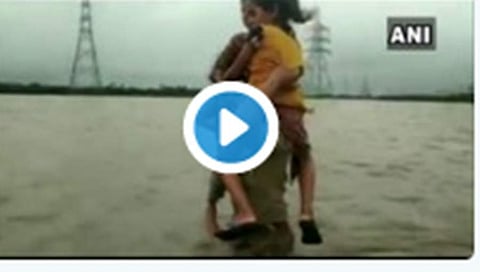 ಭೀಕರ ಪ್ರವಾಹದಲ್ಲಿ ಸಿಲುಕಿದ ಇಬ್ಬರು ಹೆಣ್ಣು ಮಕ್ಕಳನ್ನು ಪೊಲೀಸ್ ಕಾನ್ಸ್ ಟೇಬಲ್ ತನ್ನ ಹೆಗಲ ಮೇಲೆ ಹೊತ್ತು ಸಾಗುವ ಮೂಲಕ ಅವರ ಜೀವ ಉಳಿಸಿದ್ದಾರೆ.