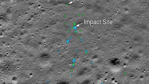 ನಾಸಾದ ಲೂನಾರ್ ರೆಕನೈಸನ್ಸ್ ಆರ್ಬಿಟರ್ (ಎಲ್ಆರ್ಒ) ಮೂಲಕ ತೆಗೆದ ಚಿತ್ರವೊಂದನ್ನು ನಾಸಾ ಸಾಮಾಜಿಕ ಜಾಲತಾಣದಲ್ಲಿ ಬಿಡುಗಡೆ ಮಾಡಿದ್ದು, ಚಿತ್ರದಲ್ಲಿ ವಿಕ್ರಮ್ ಲ್ಯಾಂಡರ್ ಪತನಗೊಂಡ ಸ್ಥಳ ಮತ್ತು ಅದಕ್ಕೆ ಸಂಬಂಧಿತ ಶಿಲಾಖಂಡರಾಶಿಗಳ ಕ್ಷೇತ್ರಗಳು ಪತ್ತೆಯಾಗಿರುವುದು ಕಂಡು ಬಂದಿದೆ.