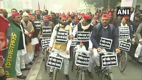 ಲಖನೌ: ಪೌರತ್ವ ತಿದ್ದುಪಡಿ ಕಾಯ್ದೆ, ರಾಷ್ಟ್ರೀಯ ಪೌರತ್ವ ನೋಂದಣಿ ಹಾಗೂ ರಾಷ್ಟ್ರೀಯ ಜನಸಂಖ್ಯಾ ನೋಂದಣಿ ವಿರುದ್ಧ ಸಮಾಜವಾದಿ ಶಾಸಕರು ಪಕ್ಷದ ಕಚೇರಿಯಿಂದ ವಿಧಾನಸಭೆಯವರೆಗೂ ಹಮ್ಮಿಕೊಂಡಿದ್ದ ಸೈಕಲ್ ಜಾಥಾಕ್ಕೆ ಎಸ್ ಪಿ ರಾಷ್ಟ್ರೀಯ ಅಧ್ಯಕ್ಷ ಅಖಿಲೇಶ್ ಯಾದವ್ ಇಂದು ಚಾಲನೆ ನೀಡಿದರು.