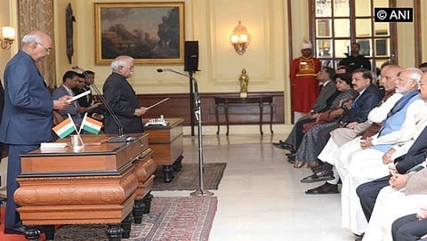 ರಾಷ್ಟ್ರಪತಿ ಭವನದಲ್ಲಿಇಂದು ಮಧ್ಯಾಹ್ನ 1 ಗಂಟೆ ಸುಮಾರಿನಲ್ಲಿ ನಡೆದ ಸಮಾರಂಭದಲ್ಲಿ ರಾಷ್ಟ್ರಪತಿ ರಾಮನಾಥ್ ಕೋವಿಂದ್ ಅವರು ಅಧಿಕಾರ ಮತ್ತು ಗೌಪ್ಯತೆಯ ಪ್ರಮಾಣ ವಚನ ಬೋಧಿಸಿದರು.