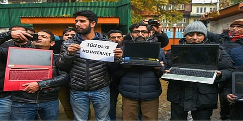 ಶ್ರೀನಗರದ ಕಾಶ್ಮೀರ ಪ್ರೆಸ್ ಕ್ಲಬ್ನಲ್ಲಿ ಮಂಗಳವಾರ ವಿವಿಧ ಸ್ಥಳೀಯ, ರಾಷ್ಟ್ರೀಯ ಮತ್ತು ಅಂತಾರಾಷ್ಟ್ರೀಯ ಮಾಧ್ಯಮ ಸಂಸ್ಥೆಗಳಿಗೆ ಸೇರಿದ ಮಾಧ್ಯಮ ಪ್ರತಿನಿಧಿಗಳು, ಬ್ರಾಡ್ಬ್ಯಾಂಡ್ ಮತ್ತು ಮೊಬೈಲ್ ಇಂಟರ್ನೆಟ್ ಅನ್ನು ಸ್ಥಗಿತಗೊಳಿಸುವುದರ ವಿರುದ್ಧ ಪ್ರತಿಭಟನೆ ನಡೆಸಿದರು, ಆಗಸ್ಟ್ 5 ರಂದು ಸಂವಿಧಾನದ 370 ಮತ್ತು 35 ಎ ವಿಧಿಯನ್ನು ಕೇಂದ್ರ ಸರ್ಕಾರ ರದ್ದುಗೊಳಿಸಿದ ನಂತರ ರಾಜ್ಯದಲ್ಲಿ ಇಂಟರ್ ನೆಟ್ ಸೇವೆ ರದ್ದುಗೊಳಿಸಲಾಗಿದೆ.