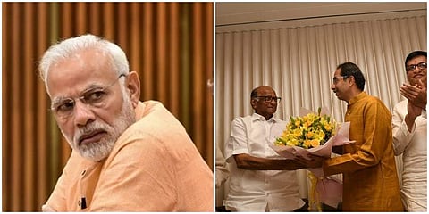 ಮುಂಬೈ: ಮಹಾರಾಷ್ಟ್ರದಲ್ಲಿ 3 ದಿನಗಳ ಬಿಜೆಪಿ ಸರ್ಕಾರ ಬಹುಮತವಿಲ್ಲದೇ ಪತನಗೊಂಡಿದ್ದು, ದೇವೇಂದ್ರ ಫಡ್ನವಿಸ್ ರಾಜೀನಾಮೆ ನೀಡಿದ್ದಾರೆ. ಈ ಬೆನ್ನಲ್ಲೇ ಎನ್ ಸಿಪಿ-ಕಾಂಗ್ರೆಸ್ -ಶಿವಸೇನೆ ಸಮ್ಮಿಶ್ರ ಸರ್ಕಾರದ ಮುಖ್ಯಮಂತ್ರಿಯಾಗಿ ಡಿ.1 ರಂದು ಶಿವಸೇನೆ ಮುಖ್ಯಸ್ಥ ಉದ್ಧವ್ ಠಾಕ್ರೆ ಪ್ರಮಾಣವಚನ ಸ್ವೀಕರಿಸಲಿದ್ದಾರೆ.
