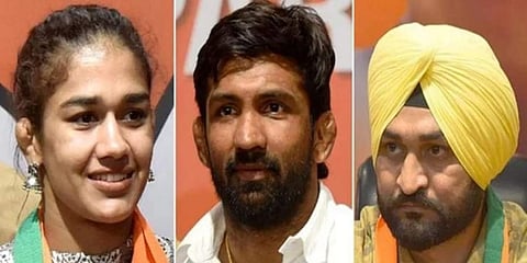 ಹರಿಯಾಣ ವಿಧಾನಸಭೆಗೆ ನಡೆದ ಚುನಾವಣೆಯಲ್ಲಿ ಬಿಜೆಪಿ ಪರ ಅಖಾಡಕ್ಕೆ ಇಳಿದಿದ್ದ ಕುಸ್ತಿ ಪಟುಗಳು ಸೋಲಿನ ರುಚಿ ಕಂಡಿದ್ದಾರೆ. ಆದರೆ, ಮಾಜಿ ಹಾಕಿ ಆಟಗಾರ ಸಂದೀಪ್ ಸಿಂಗ್ ಭರ್ಜರಿ ಜಯ ಸಾಧಿಸಿದ್ದಾರೆ.