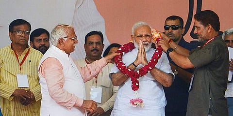 ಸದ್ಯದಲ್ಲಿ ವಿಧಾನಸಭೆ ಚುನಾವಣೆ ಎದುರಿಸಲಿರುವ ಹರಿಯಾಣದ ರೋಹ್ಟಕ್ ನಲ್ಲಿ ವಿಜಯ್ ಸಂಕಲ್ಪ ರ್ಯಾಲಿ ಉದ್ದೇಶಿಸಿ ಮಾತನಾಡಿದ ಪ್ರಧಾನಿ ಮೋದಿ, ಈ ಬಾರಿ ಜನರು ನಮಗೆ ಅಗಾಧವಾದ ಬೆಂಬಲವನ್ನು ನೀಡಿ ಮತ್ತೆ ಅಧಿಕಾರ ನೀಡಿದ್ದಾರೆ. 100 ದಿನಗಳಲ್ಲಿ ನಾವು ಏನೇ ಮಾಡಿದ್ದರು ಅಥವಾ ಏನೇ ದೊಡ್ಡ ನಿರ್ಧಾರಗಳನ್ನು ತೆಗೆದುಕೊಂಡಿದ್ದರು ಅದು ಜನರ ಮೇಲೆ ನಂಬಿಕೆ ಇಟ್ಟು ಹಾಗೂ ಅವರ ಬೆಂಬಲದೊಂದಿಗೆ ಮಾಡಿದ್ದೇವೆ. ನಮ್ಮ ನಿರ್ಧಾರಗಳ ಹಿಂದೆ ದೇಶದ 130 ಕೋಟಿ ಜನರ ಸ್ಫೂರ್ತಿ ಇದೆ ಎಂದು ಎಂದಿದ್ದಾರೆ.
