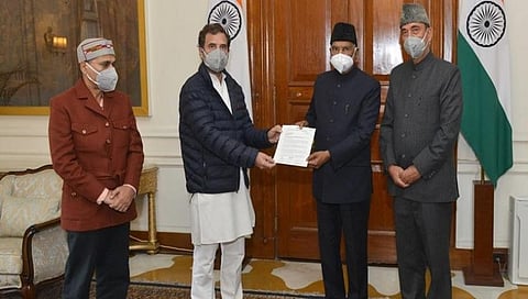 ರಾಷ್ಟ್ರಪತಿಗಳನ್ನು ಭೇಟಿ ಮಾಡಲು ಅನುಮತಿ ಪಡೆದುಕೊಂಡಿದ್ದ ರಾಹುಲ್ ಗಾಂಧಿ, ಗುಲಾಂ ನಬಿ ಆಜಾದ್, ಅಧಿರ್ ರಂಜನ್ ಚೌಧರಿ ರಾಮನಾಥ್ ಕೋವಿಂದ್ ಅವರನ್ನು ಭೇಟಿ ಮಾಡಿ ಕೇಂದ್ರ ಸರ್ಕಾರದ ನೂತನ ಕೃಷಿ ಕಾಯ್ದೆಯನ್ನು ಹಿಂತೆಗೆದುಕೊಳ್ಳುವಂತೆ ಮನವಿ ಸಲ್ಲಿಸಿದರು.