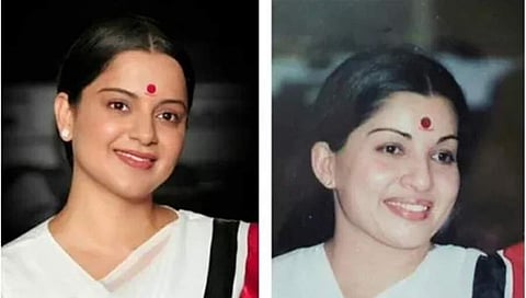 ಚಿತ್ರದಲ್ಲಿ ಬಿಳಿಸೀರೆ ಉಟ್ಟಿರುವ ಕಂಗನಾ ಅವರು ಹಣೆಯ ಮೇಲೆ ಅಗಲ ಗುಂಡು ಬಿಂದಿಯನ್ನು ಇಟ್ಟುಕೊಂಡಿದ್ದು, ಜಯಲಲಿತಾರಂತೆಯೇ ಕಾಣಿಸಿಕೊಂಡಿದ್ದಾರೆ.