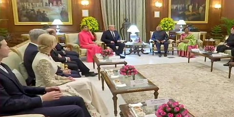 ರಾಷ್ಟ್ರಪತಿ ಕೋವಿಂದ್ ದಂಪತಿ ಟ್ರಂಪ್ ದಂಪತಿಯನ್ನು ರಾಷ್ಟ್ರಪತಿ ಭವನದಲ್ಲಿ ಸ್ವಾಗತಿಸಿದರು. ಮಾತುಕತೆ ಬಳಿಕ ಟ್ರಂಪ್ ದಂಪತಿ ರಾಷ್ಟ್ರಪತಿ ಭವನದಲ್ಲಿ ನೆರೆದಿರುವ ಆಹ್ವಾನಿತ ಗಣ್ಯರನ್ನು ಭೇಟಿ ಮಾಡಿದ್ದಾರೆ.