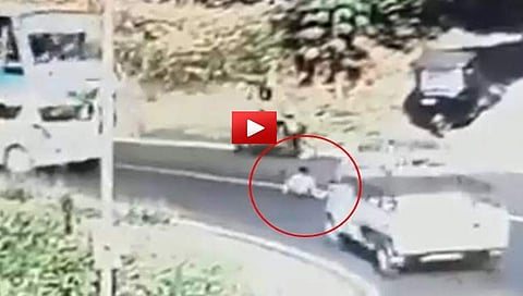 ವೇಗವಾಗಿ ಬರುತ್ತಿದ್ದಾಗ ರಸ್ತೆ ತಿರುವಿನಲ್ಲಿ ಕಾರಿನ ಹಿಂಬದಿಯ ಸೀಟಿನಲ್ಲಿ ಕುಳಿತಿದ್ದ ಮಗು ರಸ್ತೆಗೆ ಬಿದ್ದಿದೆ. ಕ್ಷಣ ಮಾತ್ರದಲ್ಲಿ ಎದುರಿಗೆ ಬರುತ್ತಿದ್ದ ಬಸ್ ಮತ್ತು ಕಾರಿನ ಹಿಂದೆ ಬರುತ್ತಿದ್ದ ವ್ಯಾನ್ ಚಾಲಕ ಸಡನ್ ಆಗಿ ಬ್ರೇಕ್ ಹಾಕಿ ನಿಂತವು. ಇಲ್ಲದಿದ್ದರೆ ದೊಡ್ಡ ದುರಂತವೇ ನಡೆದು ಹೋಗುತ್ತಿತ್ತು. ಕೂಡಲೇ ಕಾರಿನಿಂದ ಇಳಿದ ತಂದೆ ಮಗುವನ್ನು ಎತ್ತಿಕೊಂಡಿದ್ದಾರೆ.