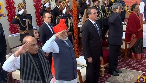 ಕಾರ್ಯಕ್ರಮದಲ್ಲಿ ಬ್ರೆಜಿಲ್ ಅಧ್ಯಕ್ಷ ಬೊಲ್ಸೊನಾರೋ ಅವರು ಮುಖ್ಯ ಅತಿಥಿಯಾಗಿ ಆಗಮಿಸಿದ್ದು, ಬೊಲ್ಸೊನಾರೋ ಅವರನ್ನು ರಾಷ್ಟ್ರಪತಿಗಳು ಆತ್ಮೀಯತೆಯಿಂದ ರಾಜ್'ಪಥಕ್ಕೆ ಬರಮಾಡಿಮಾಡಿಕೊಂಡರು.