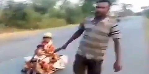 ನವದೆಹಲಿ: ಲಾಕ್ ಡೌನ್ ಪರಿಣಾಮ ಮಧ್ಯಪ್ರದೇಶದ ಕಾರ್ಮಿಕನೋರ್ವ ತನ್ನ ಊರಿಗೆ ತಲುಪಲು 700 ಕಿ.ಮೀ ನಷ್ಟು ದೂರ ಗರ್ಭಿಣಿ ಹಾಗೂ ಮಗುವನ್ನು ಬಂಡಿಯಲ್ಲಿ ಎಳೆದು ಸಾಗಿದ್ದಾನೆ. ಹೈದರಾಬಾದ್ ನಿಂದ ತನ್ನ ಊರಿಗೆ ತೆರಳಲು ಮಧ್ಯಪ್ರದೇಶದ ಕಾರ್ಮಿಕ ಎರಡು ವಾರಗಳ ಪ್ರಯಾಣದ ನಂತರ ಮಧ್ಯಪ್ರದೇಶಕ್ಕೆ ತಲುಪಿಸಿದ್ದಾರೆ.