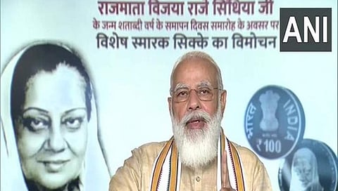 ನವದೆಹಲಿ: ಗ್ವಾಲಿಯಾರ್ ರಾಜಮಾತೆ ಎಂದೇ ಖ್ಯಾತರಾಗಿರುವ ವಿಜಯರಾಜೇ ಸಿಂಧ್ಯಾ ಅವರ ಜನ್ಮಶತಮಾನೋತ್ಸ ಅಂಗವಾಗಿ ಪ್ರಧಾನಿ ನರೇಂದ್ರ ಮೋದಿ ಅವರು 100 ರೂ. ನಾಣ್ಯ ಬಿಡುಗಡೆ ಮಾಡಿದ್ದಾರೆ.