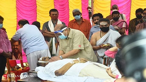 ತಿರುವಳ್ಳೂರ್ ಜಿಲ್ಲೆಯ ತಾಮರೈಪಾಕ್ಕಂನ ರೆಡ್ ಹಿಲ್ಸ್ ಬಳಿಯ ಎಸ್ ಪಿ ಬಿ ಅವರ ಪ್ರೀತಿಯ ತೋಟದ ಮನೆಯಲ್ಲಿ ತೆಲುಗು ಬ್ರಾಹ್ಮಣ ಸಂಪ್ರದಾಯದಂತೆ ಹೈದರಾಬಾದ್ ನಿಂದ ಆಗಮಿಸಿದ್ದ ಪುರೋಹಿತರ ತಂಡದ ನೇತೃತ್ವದಲ್ಲಿ ಪುತ್ರ ಎಸ್ ಪಿ ಚರಣ್ ಅವರು ಧಾರ್ಮಿಕ ವಿಧಿವಿಧಾನಗಳನ್ನು ನೆರೆವೇರಿಸಿದರು.