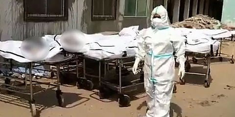 ಕೋವಿಡ್ ಸೋಂಕಿನಿಂದಾಗಿ ಸಾವನ್ನಪ್ಪಿದವರ ಶವಗಳನ್ನು ವಿಲೇವಾರಿ ಮಾಡಲು ಸಿಬ್ಬಂದಿ ಮತ್ತು ಜಾಗದ ಕೊರತೆ ಎದುರಾಗಿದ್ದು ಇದರಿಂದ ಆಸ್ಪತ್ರೆ ಆವರಣದಲ್ಲಿ ಹೆಣಗಳ ರಾಶಿಯೇ ಶೇಖರಣೆಯಾಗಿದೆ. ಹೌದು ಛತ್ತೀಸ್ ಘಡದಲ್ಲಿ ಕೋವಿಡ್ ಸೋಂಕಿತರ ಸಾವಿನ ಸಂಖ್ಯೆ ಗಣನೀಯವಾಗಿ ಏರಿಕೆಯಾಗುತ್ತಿದ್ದು, ಡಾ.ಭೀಮರಾವ್ ಅಂಬೇಡ್ಕರ್ ಸ್ಮಾರಕ ಆಸ್ಪತ್ರೆಯಲ್ಲಿ ಮೃತದೇಹಗಳನ್ನು ಇಡಲು ಕೂಡಾ ಸ್ಥಳಾವಕಾಶ ಇಲ್ಲದಂತಾಗಿದೆ. ಕೋವಿಡ್ ಶಿಷ್ಟಾಚಾರದ ಪ್ರಕಾರ ಶವಗಳನ್ನು ಅಂತ್ಯಸಂಸ್ಕಾರಕ್ಕೆ ಮುನ್ನ ಶೈತ್ಯಾಗಾರಗಳಲ್ಲಿ ದಾಸ್ತಾನು ಮಾಡಬೇಕು. ಆದರೆ ಸ್ಥಳಾವಕಾಶವಿಲ್ಲದೇ ಸಿಬ್ಬಂದಿಗಳು ಆಸ್ಪತ್ರೆಯ ಆವರಣದಲ್ಲೇ ಶವಗಳನ್ನು ಇಟ್ಟಿದ್ದಾರೆ. ಈ ಕುರಿತ ವಿಡಿಯೋವೊಂದು ಸಾಮಾಜಿಕ ಜಾಲತಾಣಗಳಲ್ಲಿ ವೈರಲ್ ಆಗುತ್ತಿದ್ದು, ಸಾರ್ವಜನಿಕ ವಲಯದಲ್ಲಿ ತೀವ್ರ ಆತಂಕ ಸೃಷ್ಟಿ ಮಾಡಿದೆ.