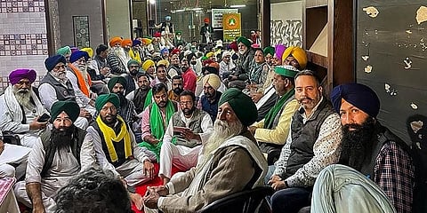 ಮಾತುಕತೆಯಲ್ಲಿ ನಿರತರಾಗಿರುವ ರೈತನಾಯಕರು