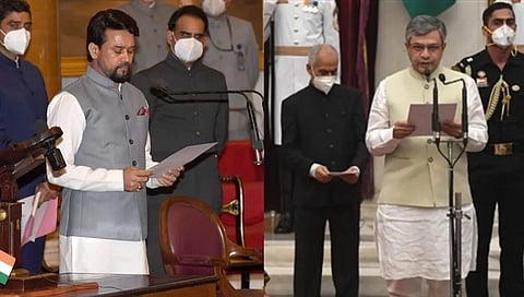 ನವದೆಹಲಿ: ಕೇಂದ್ರದ ಮಾಹಿತಿ ಮತ್ತು ಪ್ರಸಾರ ಸಚಿವರಾಗಿ ಅನುರಾಗ್ ಠಾಕೂರ್, ರೈಲ್ವೇ ಸಚಿವರಾಗಿ ಅಶ್ವಿನಿ ವೈಷ್ಣವ್ ಅವರು ಗುರುವಾರ ಅಧಿಕಾರ ಸ್ವೀಕಾರ ಮಾಡಿದ್ದಾರೆ.