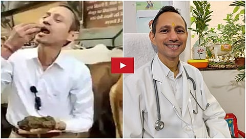 ಹಸುವಿನ ಸಗಣಿಯು ಮನುಷ್ಯನ ದೇಹ, ಮನಸ್ಸು ಮತ್ತು ಆತ್ಮವನ್ನು ಶುದ್ದೀಕರಿಸುತ್ತದೆ ಎಂದು ಹರಿಯಾಣದ ಕರ್ನಾಲ್ ಮೂಲದ ವೈದ್ಯ ಡಾ. ಮನೋಜ್ ಮಿತ್ತಲ್ ಸಗಣಿ ತಿಂದಿದ್ದಾರೆ. ಈ ವಿಡಿಯೋ ಇದೀಗ ಸಾಮಾಜಿಕ ಜಾಲತಾಣದಲ್ಲಿ ವೈರಲ್ ಆಗಿದೆ.
