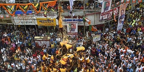 ಮುಂಬೈ: ಕೃಷ್ಣ ಜನ್ಮಾಷ್ಟಮಿ ಅಂಗವಾಗಿ ಮಹಾರಾಷ್ಟ್ರದಲ್ಲಿ ಅದ್ಧೂರಿಯಾಗಿ ದಹಿ ಹಂಡಿ ಆಚರಣೆ ನಡೆಸಲಾಗುತ್ತಿದೆ. ಮುಂಬೈ ನಲ್ಲಿ ಸಂಭ್ರಮಾಚರಣೆ ಎಂದಿಗಿಂತಲೂ ಹೆಚ್ಚಾಗಿದೆ.