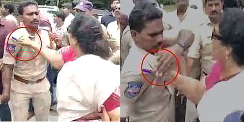 ಹೈದರಾಬಾದ್: ನ್ಯಾಷನಲ್ ಹೆರಾಲ್ಡ್ ಪ್ರಕರಣಕ್ಕೆ ಸಂಬಂಧಿಸಿದಂತೆ ತೆಲಂಗಾಣದಲ್ಲಿ ನಡೆದ ಕಾಂಗ್ರೆಸ್ ನಾಯಕರ ಪ್ರತಿಭಟನೆ ವೇಳೆ ಕೈ ನಾಯಕಿ ರೇಣುಕಾ ಚೌದರಿ ಪೊಲೀಸ್ ಸಿಬ್ಬಂದಿಯ ಕಾಲರ್ ಹಿಡಿದು ಉದ್ಧಟತನ ತೋರಿರುವ ಘಟನೆ ವರದಿಯಾಗಿದೆ.
