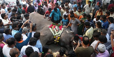ಪುದುಚೇರಿ: ಇತಿಹಾಸ ಪ್ರಸಿದ್ಧ ದೇಗುಲದ ಆನೆಯೊಂದು ಹೃದಯಾಘಾತದಿಂದ ಮೃತಪಟ್ಟಿರುವ ಘಟನೆ ಪುದುಚೇರಿಯಲ್ಲಿ ಬುಧವಾರ ನಡೆದಿದೆ.