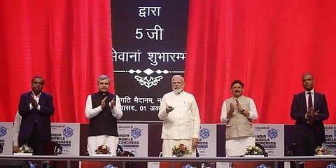 ನವದೆಹಲಿ: ಪ್ರಧಾನಿ ನರೇಂದ್ರ ಮೋದಿ ಅವರು ಶನಿವಾರ ದೆಹಲಿಯ ಪ್ರಗತಿ ಮೈದಾನದಲ್ಲಿ 6 ನೇ ಇಂಡಿಯಾ ಮೊಬೈಲ್ ಕಾಂಗ್ರೆಸ್ ನ್ನು ಉದ್ಘಾಟಿಸಿ ಬಹುನಿರೀಕ್ಷಿತ, ಭಾರತದ ಟೆಲಿಕಾಂ ಕ್ಷೇತ್ರದಲ್ಲಿ ಕ್ರಾಂತಿಕಾರಕವಾಗಿರುವ 5G ಸೇವೆಗಳಿಗೆ ಚಾಲನೆ ನೀಡಿದರು.