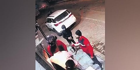 ಆತ ಕಾರಿನಿಂದ ಕೆಳಗಿಳಿದ ಕೂಡಲೇ, ಕೆಂಪು ಟೀಶರ್ಟ್ ಮತ್ತು ಕಪ್ಪು ಟೋಪಿ ಧರಿಸಿದ್ದ ದರೋಡೆಕೋರರಲ್ಲಿ ಒಬ್ಬಾತ , ಪಿಸ್ತೂಲ್ ಅನ್ನು ತೋರಿಸುತ್ತಾನೆ. ಸ್ವಲ್ಪ ಸಮಯದ ನಂತರ ಮತ್ತೋರ್ವ ಅಲ್ಲಿಗೆ ಬಂದು ಪಿಸ್ತೂಲ್ ಝಳಪಿಸುತ್ತಾನೆ. ಬಳಿಕ ಕಾರಿನೊಂದಿಗೆ ಪರಾರಿಯಾಗಿದ್ದಾರೆ.