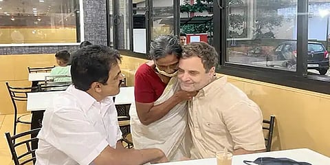 '' ಅವರು ನಮ್ಮೊಂದಿಗೆ ಏಕೆ ಕುಳಿತುಕೊಳ್ಳಬಾರದು.. ಅವರಿಗೆ ಚಹಾ ಬೇಕೆ? ಎಂದು ಕೆಸಿ ವೇಣುಗೋಪಾಲ್ ಅವರನ್ನು ರಾಹುಲ್ ಪ್ರಶ್ನಿಸಿದ್ದಾರೆ. ವೇಣುಗೋಪಾಲ್ ಅದನ್ನು ಅನುವಾದಿಸಿ ನಂತರ ಮಹಿಳೆಗೆ ತನ್ನ ತಟ್ಟೆಯಿಂದ ಆಹಾರವನ್ನು ನೀಡುತ್ತಾರೆ. ರಾಹುಲ್ ಗಾಂಧಿ ಕೂಡಾ ತಮ್ಮ ತಟ್ಟೆಯಿಂದ ಆಹಾರ ತೆಗೆದು ಮಹಿಳೆಗೆ ನೀಡುತ್ತಾರೆ. ಈ ವೇಳೆ ಮಹಿಳೆ ರಾಹುಲ್ ಗಾಂಧಿಯ ಮುಖವನ್ನು ಪ್ರೀತಿಯಿಂದ ಸವರುತ್ತಾರೆ. ಆಗ ರಾಹುಲ್ ಗಾಂಧಿ ಕೂಡಾ ಅವರನ್ನು ಅಕ್ಕರೆಯಿಂದ ತಬ್ಬಿಕೊಳ್ಳುತ್ತಾರೆ.