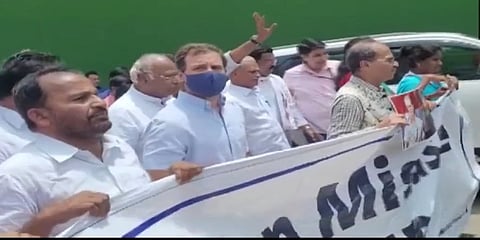 ಈ ಸಂದರ್ಭದಲ್ಲಿ ರಾಹುಲ್ ಗಾಂಧಿ ರಸ್ತೆ ಮಧ್ಯೆ ಕುಳಿತು ಪ್ರತಿಭಟನೆ ನಡೆಸಿದರು. ಈ ಸಂದರ್ಭದಲ್ಲಿ ಮಾತನಾಡಿದ ರಾಹುಲ್ ಗಾಂಧಿ, ಎಲ್ಲಾ ಕಾಂಗ್ರೆಸ್ ಸಂಸದರು ಇಲ್ಲಿಗೆ ಬಂದಿದ್ದಾರೆ. ಹಣದುಬ್ಬರ, ನಿರುದ್ಯೋಗದ ಬಗ್ಗೆ ಅವರು ಮಾತನಾಡುತ್ತಿದ್ದಾರೆ. ಪೊಲೀಸರು ಇಲ್ಲಿ ಕುಳಿತುಕೊಳ್ಳಲು ಬಿಡುತ್ತಿಲ್ಲ. ಸಂಸತ್ ಒಳಗಡೆಯೂ ಚರ್ಚೆಗೆ ಅವಕಾಶ ನೀಡುತ್ತಿಲ್ಲ ಎಂದು ಹೇಳಿದರು.